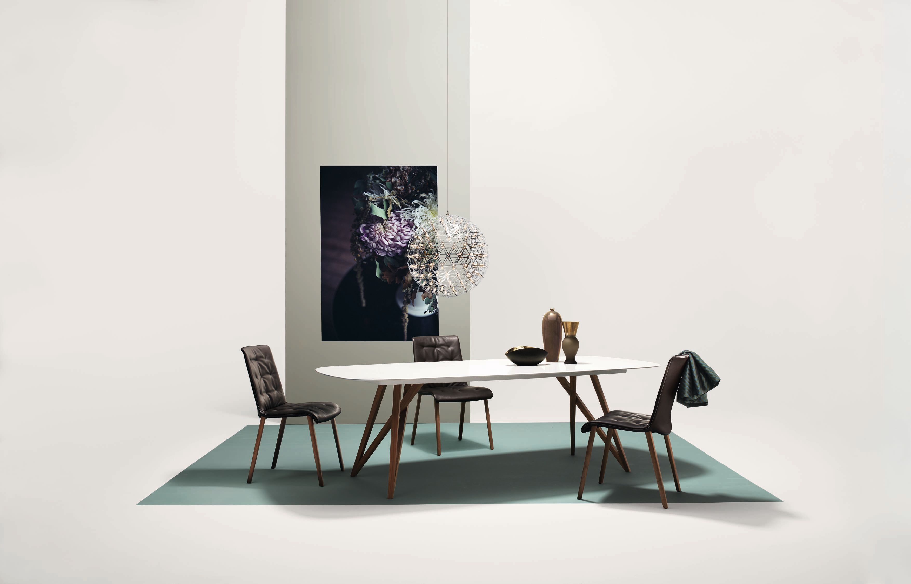 Sweeping lines shape the silhouette of the chair – charmingly emphasized by the color-contrast piping. Liz Chair combines refined design with ergonomic comfort. An elastic high-tech textile beneath the cover ensures exceptional comfort – with extra soft upholstery as an option.